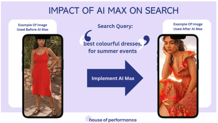 Let’s say you’re running search ads for a fashion brand. You may be bidding on “red midi dress,” but a high-value customer might be searching for something like “best colourful dresses for summer events.” Without AI Max, you’d miss that query — but with it, your campaign can both match that search and adapt the creative to better align with what the customer is looking for.