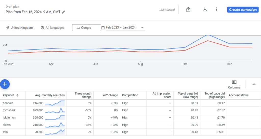 There are two main ways we use to calculate SoS: through either Google Trends or Google Keyword Planner. We will go through the pros & cons of each later on, firstly here are two step-by-step guides to calculating SoS.